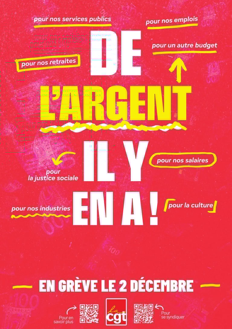 Le tract de l’Union Départementale CGT 72 appelle à une journée de grève et de manifestation le mardi 2 décembre, à 10h30, Place de la Préfecture au Mans.